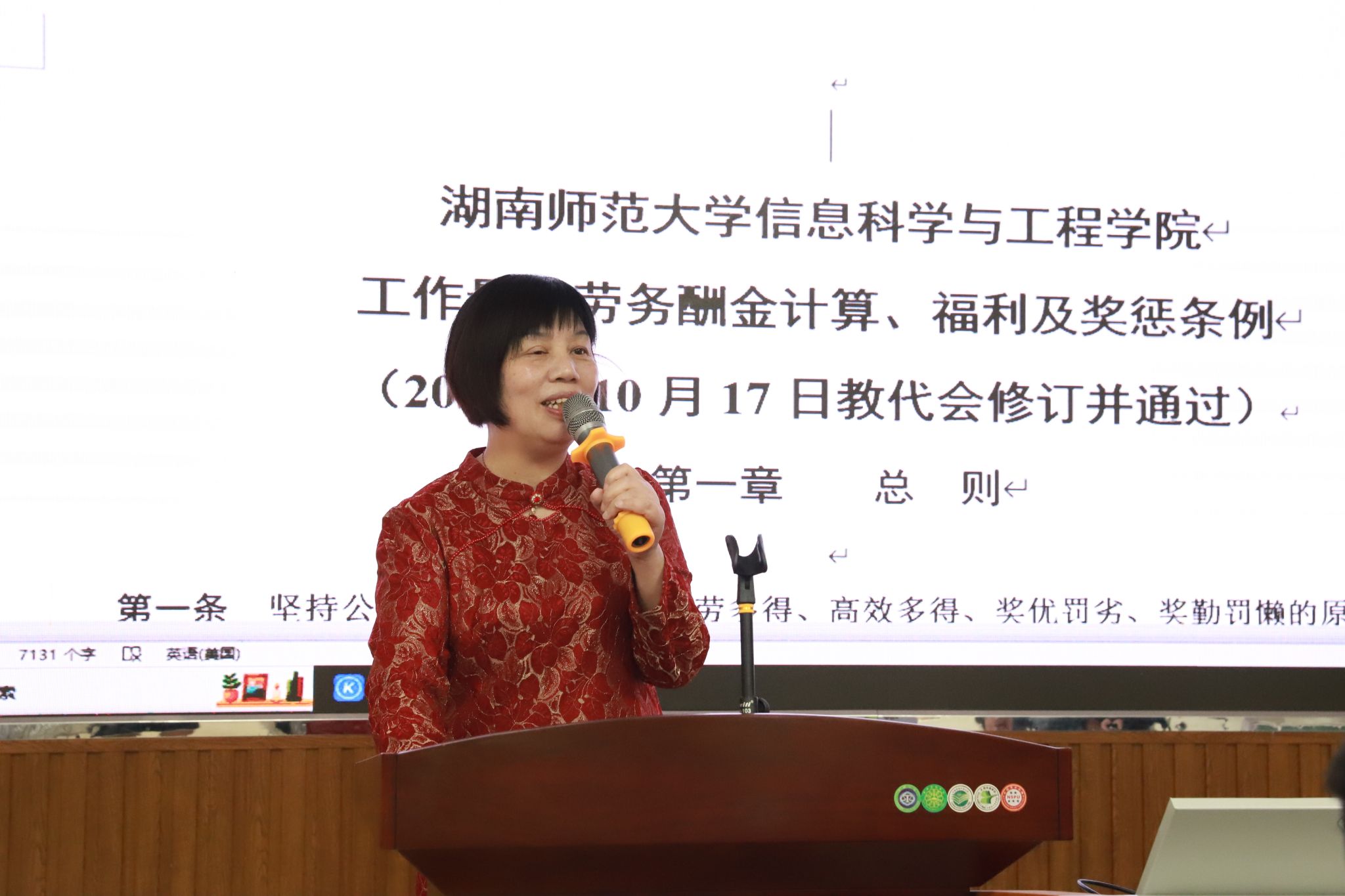 接下来,余小莉院长就教职工劳务酬金计算、协同育人等条例的修改进行了详细说明。她强调了这些修改对于提升教学质量、保障教职工权益的重要意义,并希望与会人员能够认真审议,提出宝贵意见。