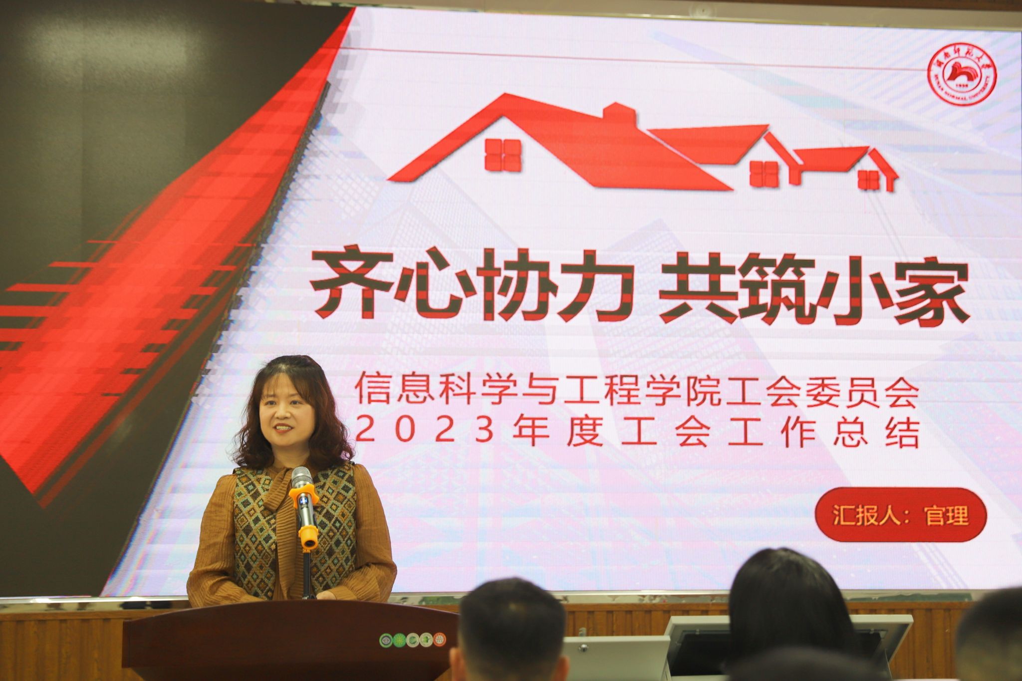 教代会在庄严的国歌声中拉开了帷幕。首先,工会官理主席作了题为《齐心协力,共筑小家》的工作报告。她详细回顾了去年工会在维护教职工权益,丰富教职工文化生活,促进校园文化建设等方面所取得的成就,并对全体教职工的辛勤付出表示衷心的感谢。官主席的发言赢得了与会人员的热烈掌声。