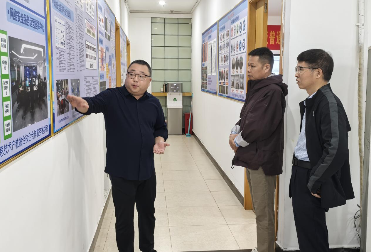 信息院一行在陈伟的陪同下参观了实训场地、实验环境等,随后双方进入座谈环节。会上,陈伟介绍了公司的业务情况及与各院校的合作情况。李琦结合产业需求,针对信息院人才培养方案提出校企融合框架,强化企业实训环节与理论教学的协同,探索联合开展科研项目的合作路径。刘相滨表示,学生的综合素养与专业技能的培育是一个多维度、跨领域的系统工程,其成效的取得,绝非仅仅依赖于学院内部的教育资源与教学活动。在当今社会经济发展日新月异的背景下,校企深度融合已成为提升人才培养质量、促进学生全面发展的重要途径与必然选择。周劲松指出学生培养是一个系统工程,人才培养工作需紧密贴合社会发展需求,以社会对各类人才的现实需要为指引,科学规划、精准实施人才培养方案,确保培养出符合社会要求的高素质人才。