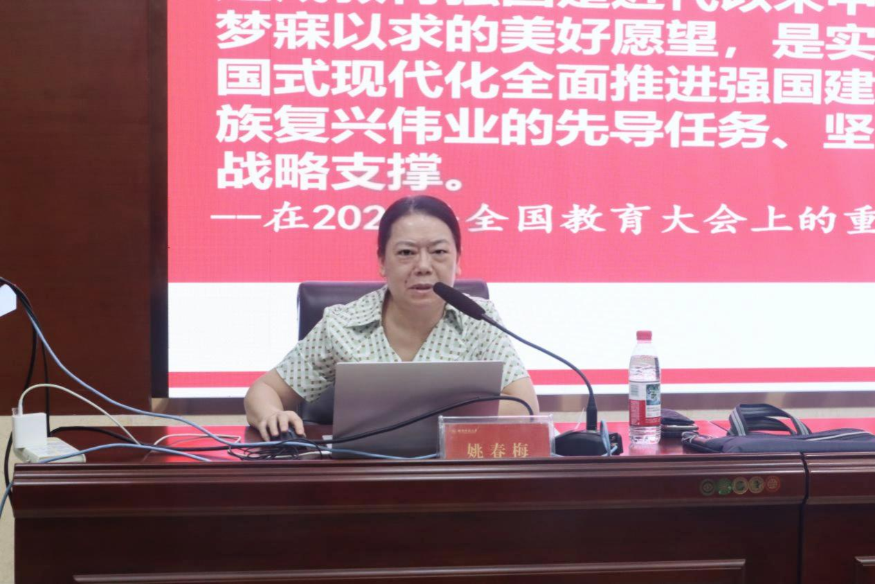 (通讯员 解欣玥 李丰耘)为深化学生对教育强国建设的战略部署、改革方向和实践路径的认识,提高学生的思想政治素质,6月5日下午,永利yl23411no1(以下简称“信息院”)与物理与电子科学学院在中和楼342报告厅开展以“实现从教育大国向教育强国的历史性跃升”为主题的《形势与政策》课程,课程由学校纪委书记姚春梅教授主讲。