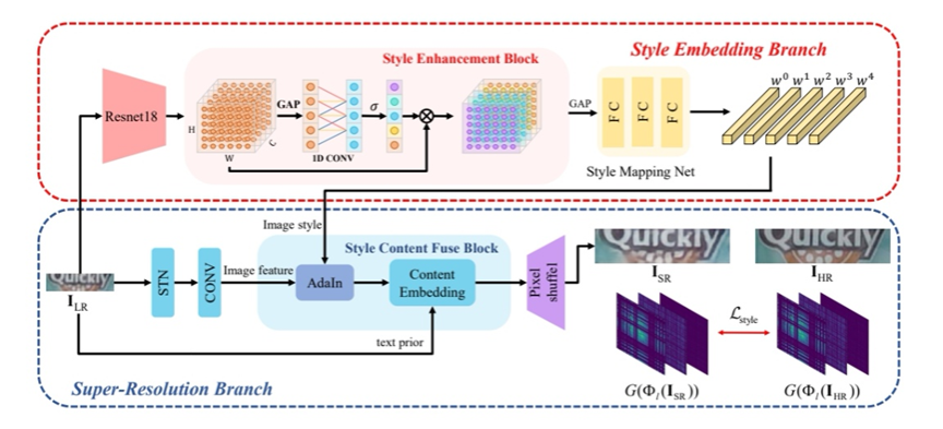 该研究提出了一种全新的基于风格嵌入的场景文本图像超分辨率重建方法(StyleSRN)。这一方法设计了风格增强模块(SEB)和风格内容融合模块(SCFB),并提出了一种基于Gram矩阵的文本风格损失。该方法有效应对了场景文本图像超分辨率重建任务(STISR)中依赖文本先验而丢失文本风格信息的挑战,为文本图像分析与识别领域的研究提供了新思路和技术支持。