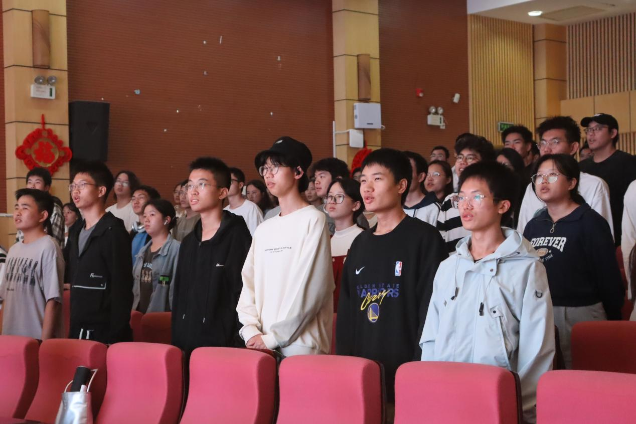 活动伊始,全体起立,奏唱团歌。肖笛上台讲话,他鼓励团员青年坚定理想,敢于创造,希望同学们在此次团课中学有所获。随后,王慧上台讲话,她跟大家明确了团课的性质,并从学习、实践、创新三方面出发,向同学们提出建议。创青团校学员代表2024级团总支王宇航同学发言,他表示通过团课,广大团员能提高思想觉悟,增强责任感和使命感,并代表全体团员承诺,将以饱满的热情投入到接下来的团课学习中。