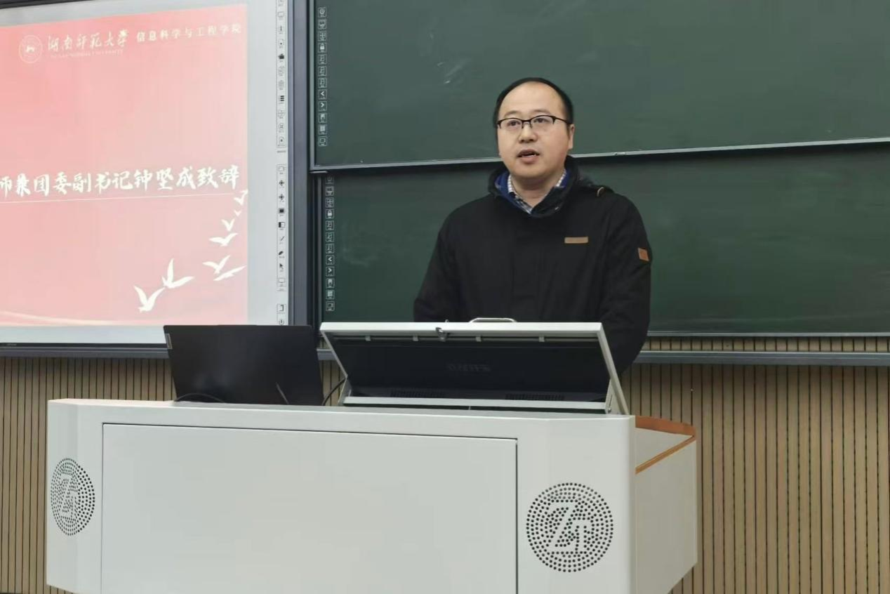 会议伊始,全体参会人员奏唱国歌。钟坚成致辞,他表示党的二十大为我们指明了方向,青年一代应在新征程中勇于担当,为民族复兴贡献自己的力量。
