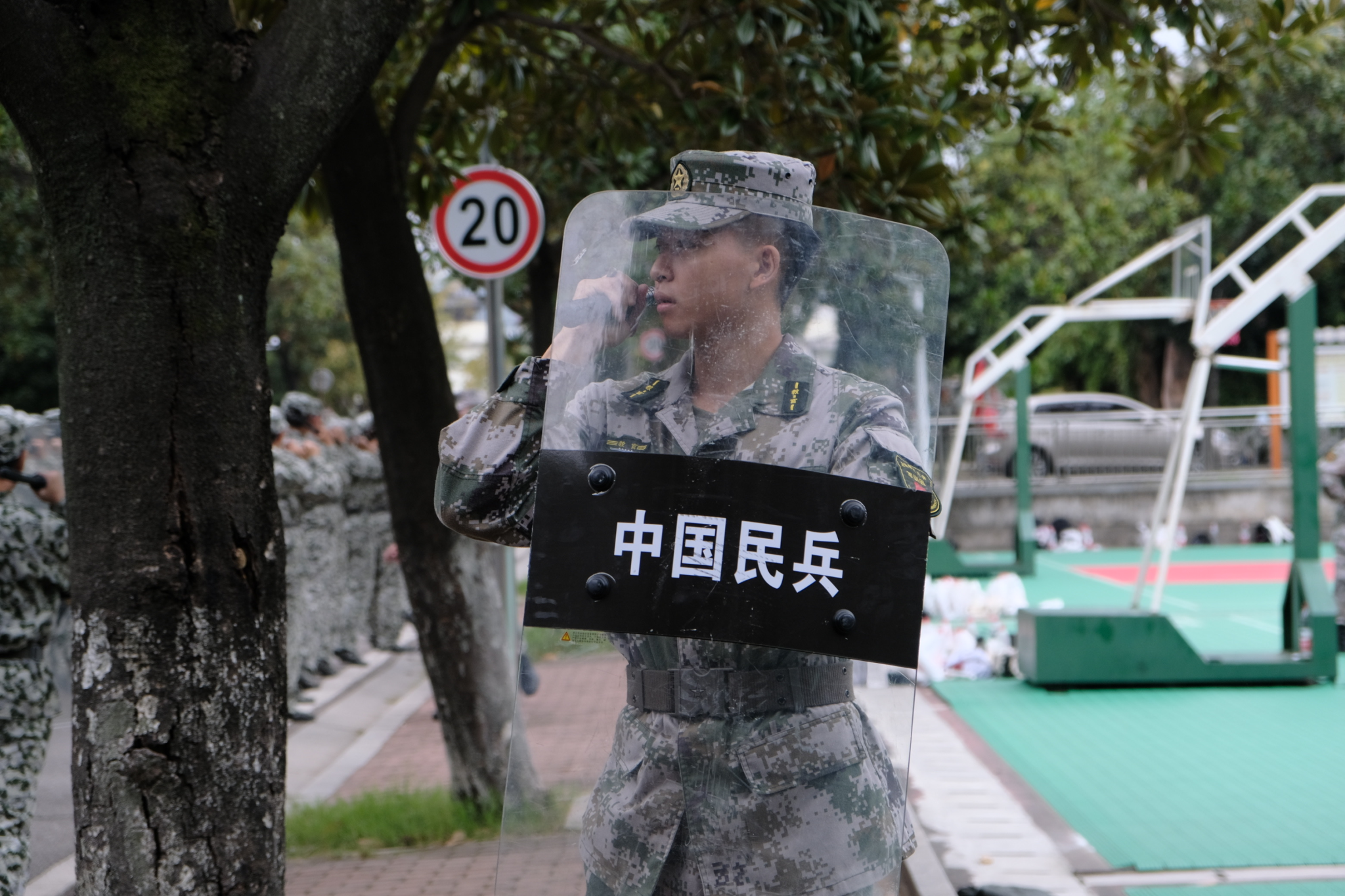 教官进行盾牌操动作演示